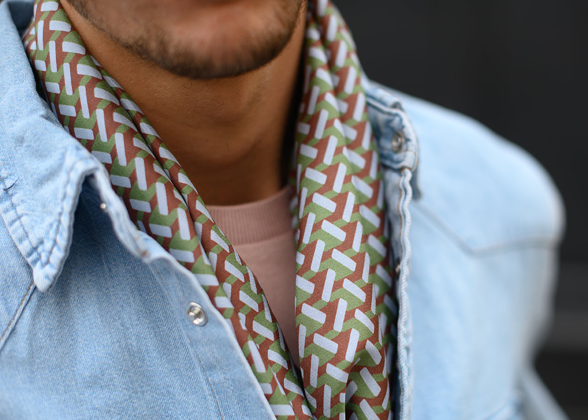 Nos foulards obéissent à une coupe en tube et s'enroulent en 8 autour du cou. La démonstration en vidéo !